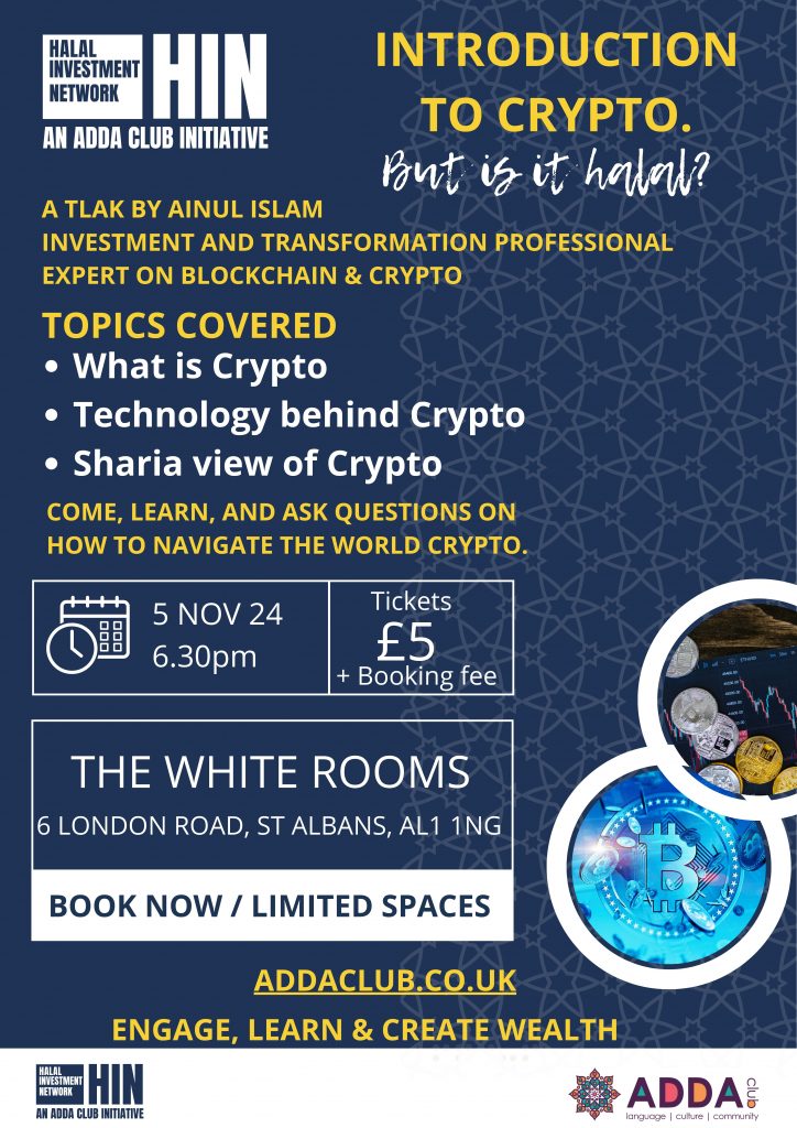 The Halal Investment Network:, presents An Introduction To Crypto Seminar. on Tue Nov 05 2024 at 18:30 GMT at The White Rooms. Get ready to learn all about crypto and how it fits into the Halal investment landscape. Presented by Ainul Islam, a seasoned investment professional with over 20 years of experience as a qualified […]
